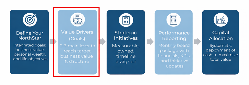 Remember: These aren’t forever—they’re for the next 12-24 months. As you achieve them, you’ll identify new value drivers. The discipline is in saying “not yet” to everything else.